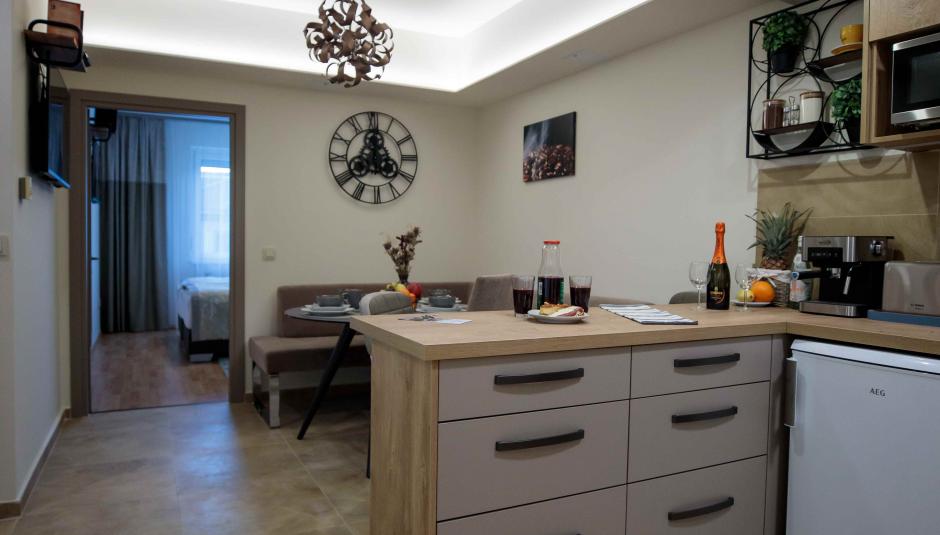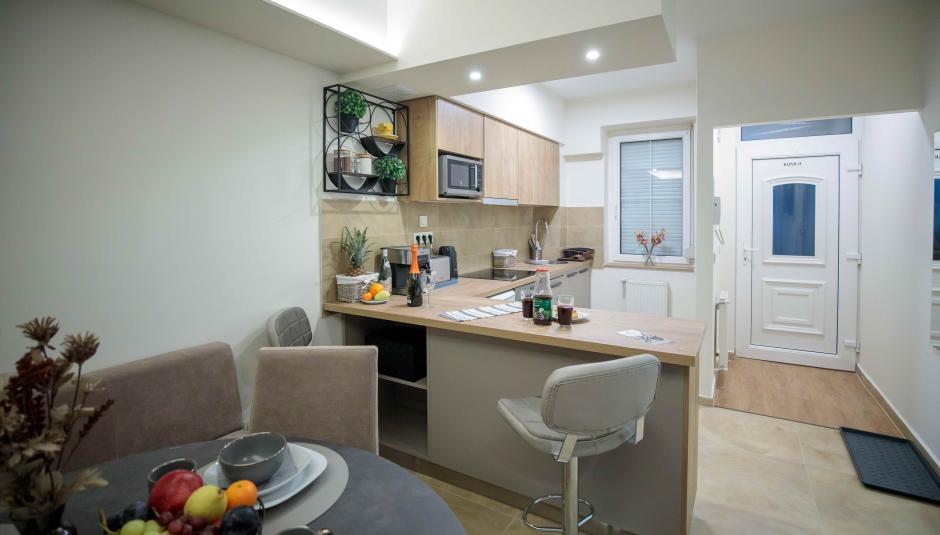Apartmanunk nappalival,és minden igényt kielégítő jól felszerelt konyhával rendelkezik.